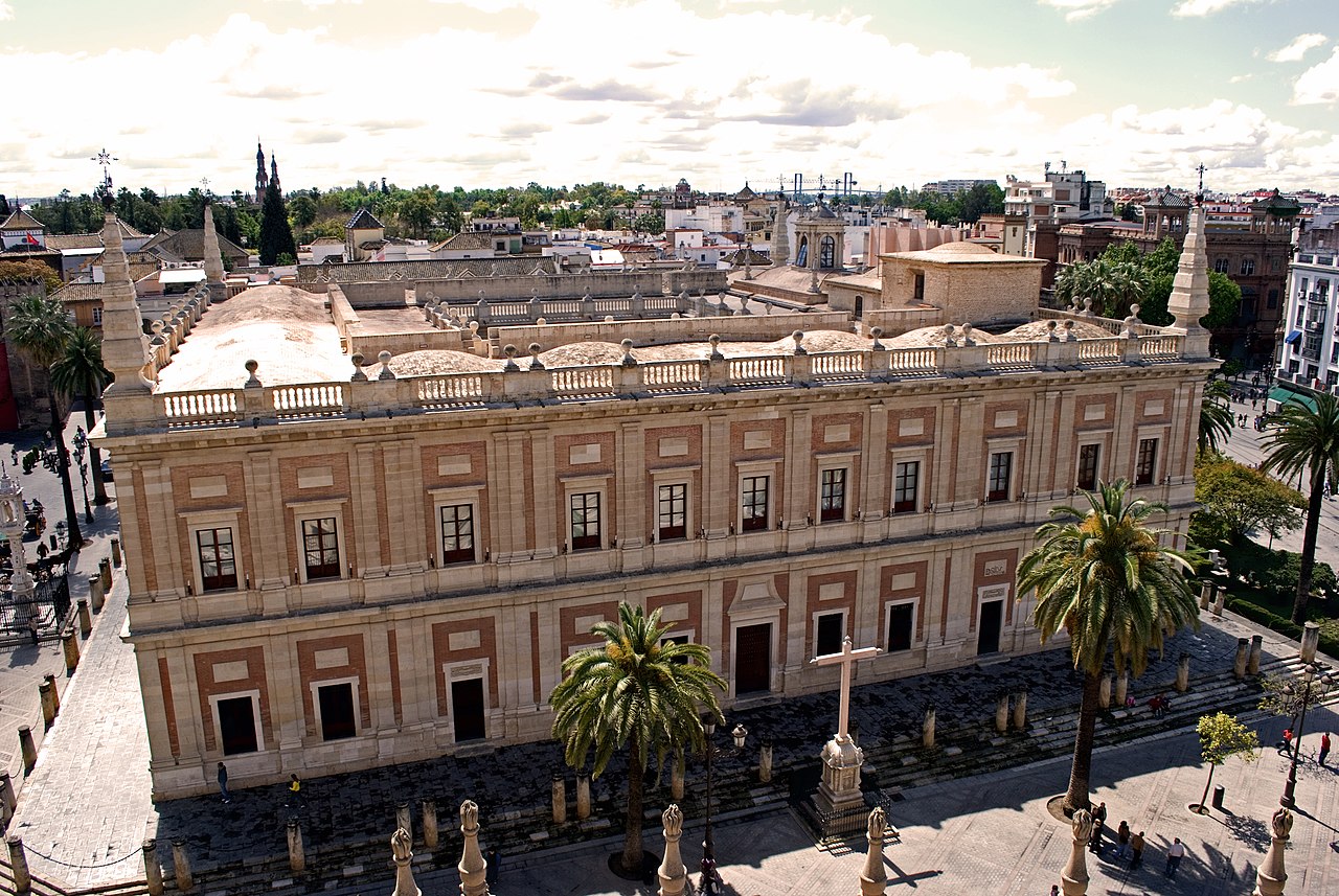 Asentado sobre una antigua Casa de Lonja (que posteriormente fue también Academia de Bellas Artes), el Archivo de Indias se constituye en 1781, cuando Carlos III toma la decisión de habilitar ese espacio para reunir todos los documentos relacionados con el Nuevo Mundo y así facilitar su estudio. En el Archivo de Indias se reúnen así todos los documentos que estaban hasta entonces divididos entre Cádiz, Madrid, Simancas y la propia Sevilla.